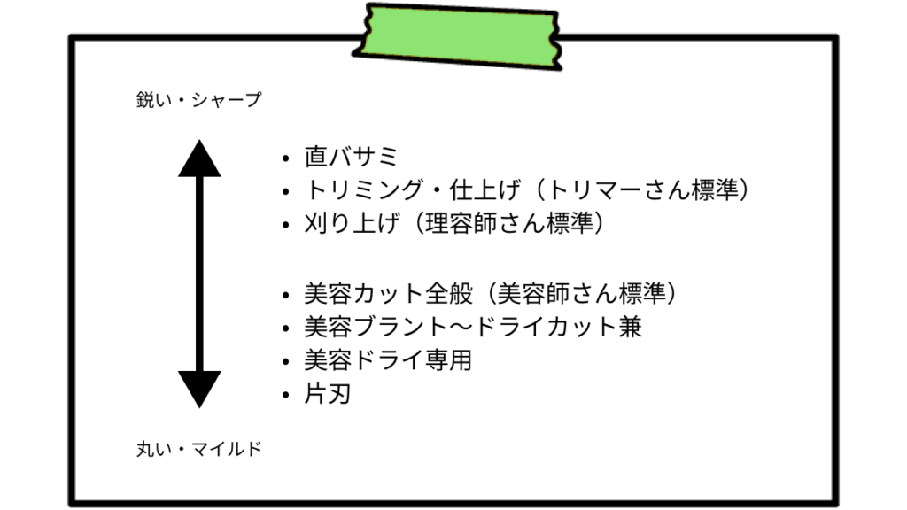 シザーは刃を研いだだけでは切れません。ソリと呼ばれる刀身のカーブを整えて初めて切れるようになります。